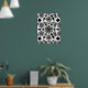 Print of a twelve point mandala pattern in shades of graphite and silver gray, accented with black and white