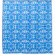 Twelve point mandala pattern in shades of cobalt and cerulean blue with turquoise and aqua, accented with white shower curtain
