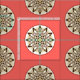 Twelve point mandala pattern in shades of deep chocolate brown, cream and beige on a deep coral pink background
