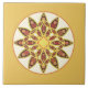 Twelve point mandala pattern tile in shades of chocolate brown, mustard gold, and dark brown on white, with a gold background