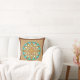 Twelve point mandala pattern in shades of light chocolate, tan and cream with a shaded turquoise background, framed in tan and chocolate