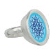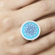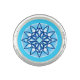Twelve point mandala pattern in shades of turquoise, navy, and cobalt blue with accents of white