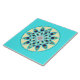 Twelve point mandala pattern tile in shades of turquoise, tan, navy, beige and gray on a turquoise background