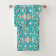 Mandala Pattern, Turquoise, Silver Grey and White Bath Towel Set