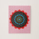 Mandala art puzzle. Brown, blue, red, orange mandala art puzzle.