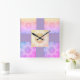 Child room accessory. Wall art room decor square clock bright rainbow tones.