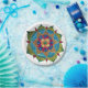Colorful hand painted mandala design - green, yellow, red, blue, gold. Harmony and nature alignment mood.