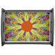 Colorful Mandala tray with an orange center. You can add your own initials to the center.