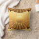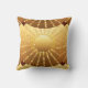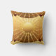 Abstract mandala pattern throw pillow in a satin gradient of overlapping discs centering around a spoked wheel of stars - shades of pale gold color to deep bronze