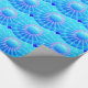 Twelve point mandala pattern gift wrap in a satin gradient of overlapping discs centering around a spoked wheel of stars - shades of turquoise / peacock and aqua, accented with soft violet