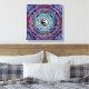 A teal, purple and blue mandala featuring a yin yang in the middle by Amelia Carrie.