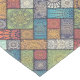 Graphic of assorted mandalas within square and rectangular shapes in a tiled design, warm muted colors, seamless repeat pattern