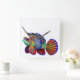 Original fine art design of a colorful Mandarin Dragonet or Goby by artist Carolyn McFann of Two Purring Cats Studio printed on a quality and customizable wall clock for coral reef and saltwater aquarium fish fans.