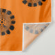 A fun abstract pattern dances about a vibrant orange background on this eye catching tapestry.