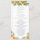 A modern, elegant wedding program for the ones who found their main squeeze. Mandarin citrus watercolor botanical orange fruit, green leaves and blossoms with a matching pattern on the back. You can change the font and font color. This collection has matching invitations, save the dates, rsvps, menus, envelopes and labels. Perfect for spring or summer weddings.
