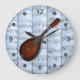 Mandolin~Rolled Sheet Music~Blue Tint Background ~ Large Clock