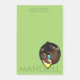 Graphic style Mandrill illustration vertical post-it notepad. Background color and text can be customized.