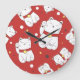 Maneki-Neko cat, Japanese doodle pattern. Large Clock