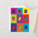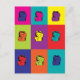 Pictures of maneki neko cat, also known as Fortune cat, done in a rainbow of colors in a pop art style on a postcard