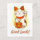 Maneki Neko With D20 RPG Dice Good Luck Postcard