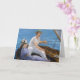 Manet Boating greeting card. Oil on canvas from 1874. Manet painted several different boat paintings during his career, Boating is perhaps the most personal and vibrant. Boating depicts a young couple in a sale boat. The young man with his hand on the rudder wears a simple white shirt, straw hat, and mustache, while the young woman leans down in the boat in a fancy blue and white dress with an elegant feathered hat. The water through which they sail is blue and calm. A beautiful gift for fans of Manet, sailing, early impressionism, and famous boat paintings.
