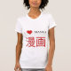 This "I love manga" or "I Heart manga" design has a black font and a red heart. It also shows the word "manga" in Japanese Kanji red font.