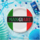 This custom party plate features the phrase "mangiare" printed across the center. Mangiare is the Italian translation for "eat" and it is printed in the colors of the flag of Italy. The first three letters are green, the second two are white, and the final three are red. It is printed across the Italian flag.
