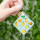 The key chain is made of metal and really sturdy. The flower design is really cheerful. The logo and colors are clear and crisp!