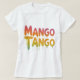 A fun and colorful t-shirt design featuring the text "Mango Tango" in a playful, multicolored hand-drawn font. The design has a vibrant tie-dye effect, adding a touch of summery flair.