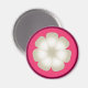 Magnet as a modern, stylized slice of an exotic, tropical mangosteen, detailed with segments in a 3-d look gradient - an original tropical fruit illustration created in Photoshop and Adobe Illustrator