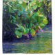 The impressionistic original artwork by ZoeSPEAK on this Shower Curtain was made from Zoe’s original photograph of a lagoon formed by mangrove trees, with their long roots growing down into the sparkling salt water. Sharing the lagoon are sea grape trees, with their round yellow green leaves hanging over the water, turning it shades of green. Sunlight peeks through, adding yellow and sky blue highlights to the rippling lagoon.