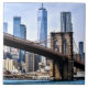 Manhattan, cityscape photograph with skyscrapers and Brooklyn bridge