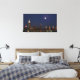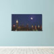 As if viewed through glass, this canvas print features a view of the New York City skyline, lit up at night under a bright waxing moon. Also available as a standard poster.