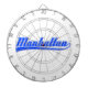 Manhattan, New York City, written with a swash (tail). Fonts in white and blue. Original text design.
