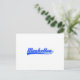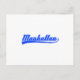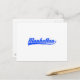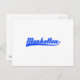 Manhattan, New York City, written with a swash (tail). Fonts in white and blue. Original text design.