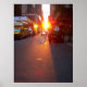 From Wikipedia: Manhattanhenge (sometimes referred to as Manhattan Solstice) is a semi-annual occurrence in which the setting sun aligns with the east-west streets of Manhattan's main street grid. The term is derived from Stonehenge, at which the sun aligns with the stones on the solstices. It was coined by Neil deGrasse Tyson, an astrophysicist at the American Museum of Natural History, in several of his writings in 2002. It occurs on those streets starting with 14th Street and heading north, that follow Manhattan's tilted east-west grid. The dates of Manhattanhenge are usually May 28 and July 12 or July 13. The two corresponding mornings of sunrise right on the center lines of the Manhattan grid are approximately December 5 and January 8.[1] As with the solstices and equinoxes, the dates vary somewhat from year to year.