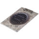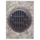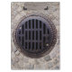 Features an antique manhole cover grate nestled in an old cobblestone road. Rustic and refined with old world charm.