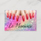 Wow your customers with these glitzy Nail Tech and manicure theme appointment business cards design template created with shiny red fingernails and a trendy holographic background along with an appointment reminder template on the flip side making use of both sides.