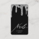 Manicurist Nail Tech Elegant Black Silver Drip Business Card