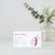 Business cards for nail technicians / manicurists. The design features a line-drawn hand of hand with painted pink nails. The back of the card has space for the prices of up to six items to be entered.