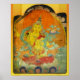 Manjushri on wood panel, Kathmandu, Nepal. Manjushri is portrayed as a beautiful 16-year-old prince. He holds in his left hand the stem of a blue lotus blossom on which rests one of the Prajnaparamita scriptures, which deal with the realization of Prajna, or wisdom. With his right hand he wields a flaming sword of wisdom to vanquish ignorance.