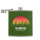 Well made flask, a little better than I had expected. Flask came in clear plastic box which gave it a nice presentation when I took it out of the zazzle packaging. Image is not printed on flask but on sticker. Don't know how this will hold up I haven't used it yet. This would make a Great gift! I plan to purchase more for friends! Cheers. I thought a little brighter than computer. Very crisp, writing wasn't