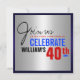 Man's 40th Birthday Invitation - Red Silver Blue