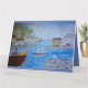 Quirky Harbour with a man and a happy dog on a boat, a gull and colurful buildings. Add text to any area/ side of card. Fully customizable.