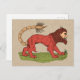 A scorpion-tailed Manticore with cinnabar-colored pelt grimaces fiercely in this original illustration based mainly upon Ctesias's description of this man-eating hybrid beast.