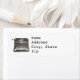 Photograph of manual typewriter with address printed in classic typewriter font.