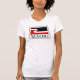 My overall review is that the T-shirt is nice, it fits true to size however the font is significantly smaller than advertised and you can't read it. The printing is unreadable and there is a strain to read it. It does not look like the advertised product. Maybe the shirt color is darker or a larger more visible font should have been used. Photos with and without flash and font is barely legible.