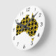 Here's a cool design for anyone who loves Australia: the map of the country filled with a checkerboard pattern of black-and-yellow road signs featuring silhouettes of seven animals unique to Australia. Kangaroo, wombat, Tasmanian devil, platypus, koala, emu, and lyrebird.