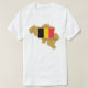 The map and flag of Belgium, with the name Belgium spelled out in the three languages of Belgium (French, Dutch and German), as well as English.