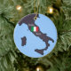 An outline map of italy with the Italian flag and the word Italy both in Italian and English.